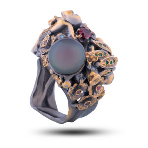 Кольцо «Галла», жемчуг, гранат, топаз, шпинель, фианит, размер 18,25