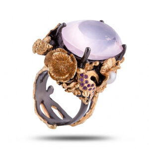 Кольцо «Язык цветов», гранат, жемчуг, кварц, размер 17