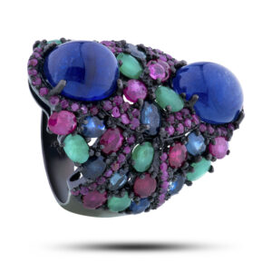 Кольцо «Олива», камни изумруд, рубин, сапфир, размер 18