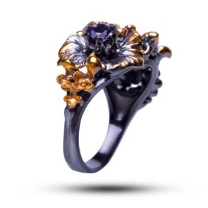 Кольцо «Букет роз», драгоценные камни аметист, шпинель, фианит