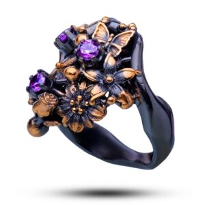 Кольцо «Колибри», драгоценные камни фианит, аметист