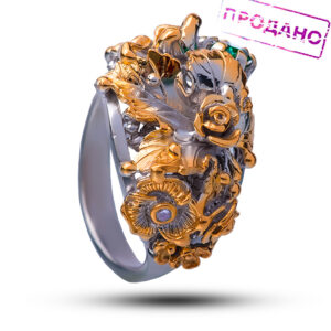 Кольцо в оправе «Букет роз», камни раухтопаз, фианит