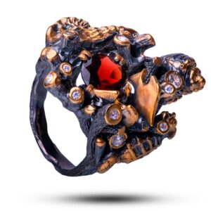Кольцо «Роза» драгоценные камни гранат, фианит