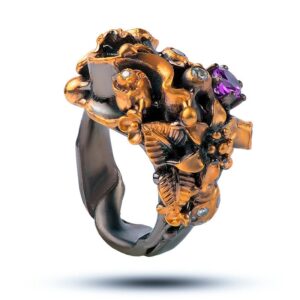 Кольцо «Флора», драгоценные камни аметист, фианит