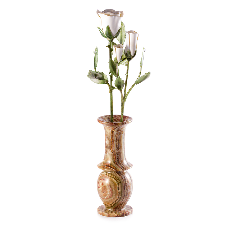 Цветы "Ваза с розами", камни оникс, кахолонг, нефрит, 40 см