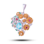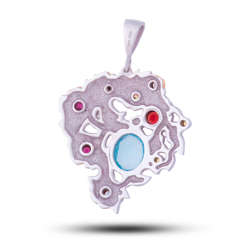 Подвеска "Роза", камни гранат, сапфир, топаз
