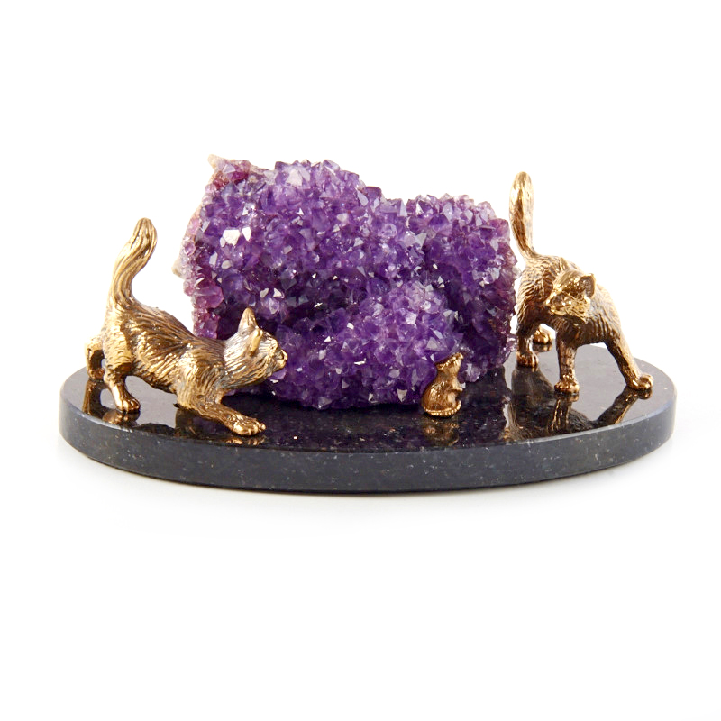 Фигурка "Две кошки", камни аметист, доломит, 60 мм