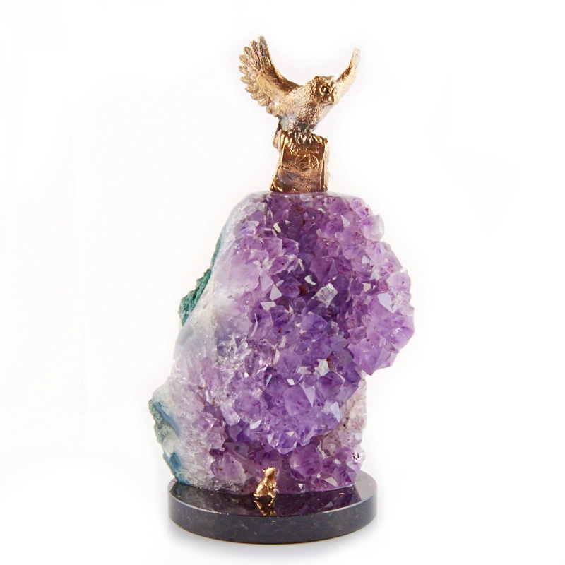Фигурка "Сова на книге", камни аметист, доломит, 182 мм