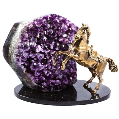 Фигурка "Конь цирковой" из камней аметист, мрамор, 190 мм