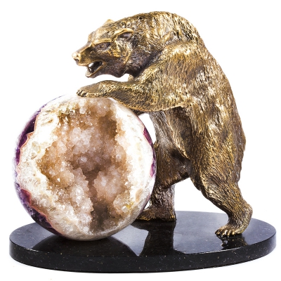 Фигурка "Медведь с шаром" из камней аметист, мрамор, 160 мм