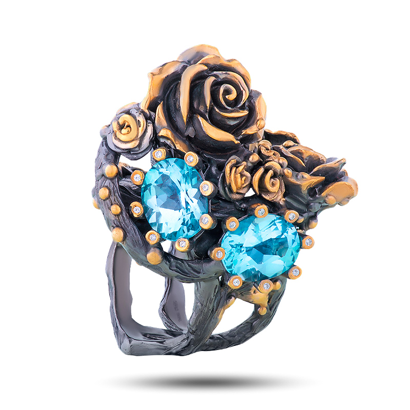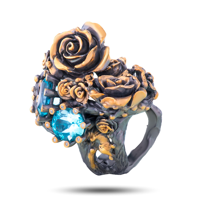 Кольцо "Букет роз", камни топаз, фианит, размер 17,75