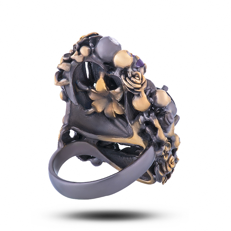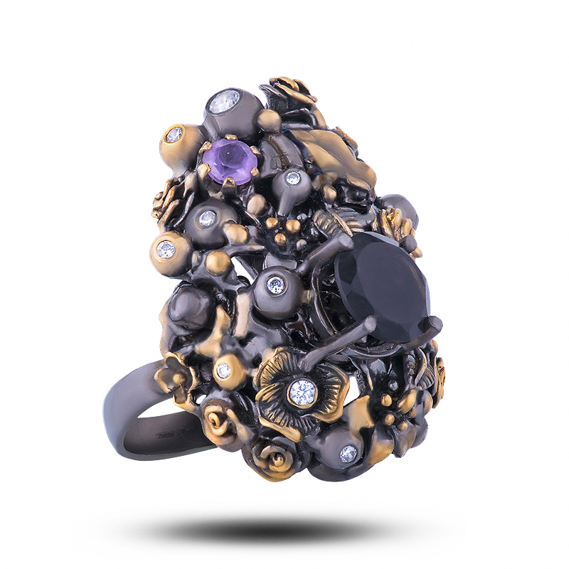 Кольцо "Дивный сад", камни раухтопаз, аметист, фианит, размер 18,25