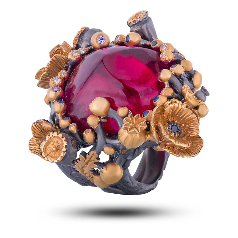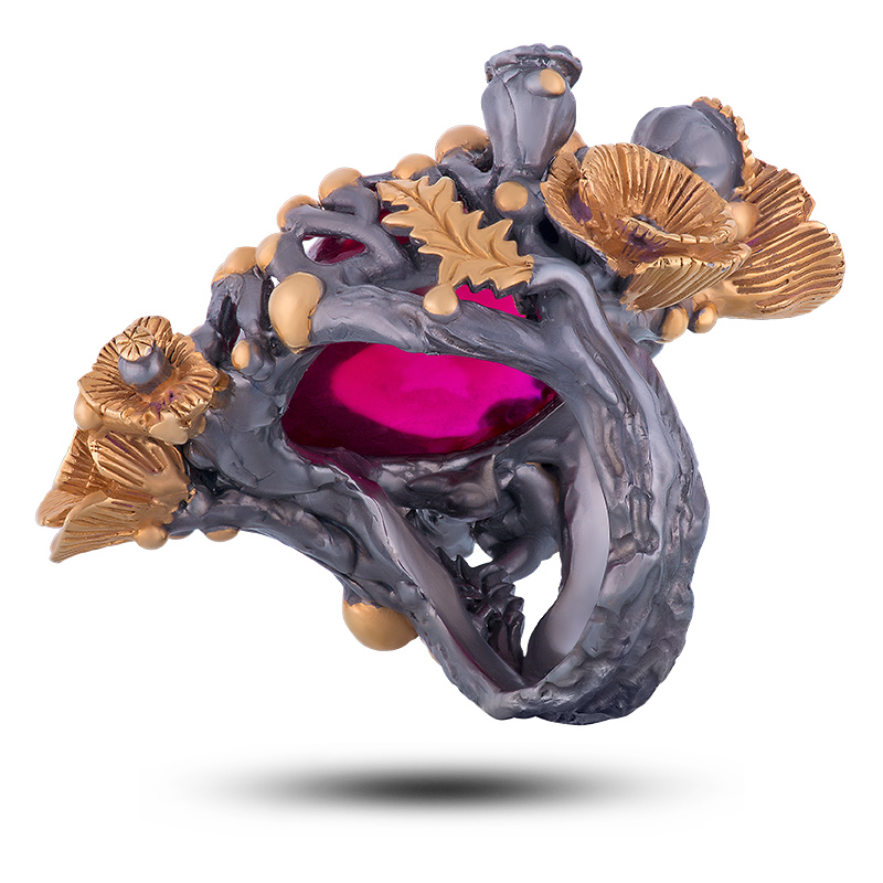 Кольцо "Маки", камни фианит, шпинель, размер 17,5