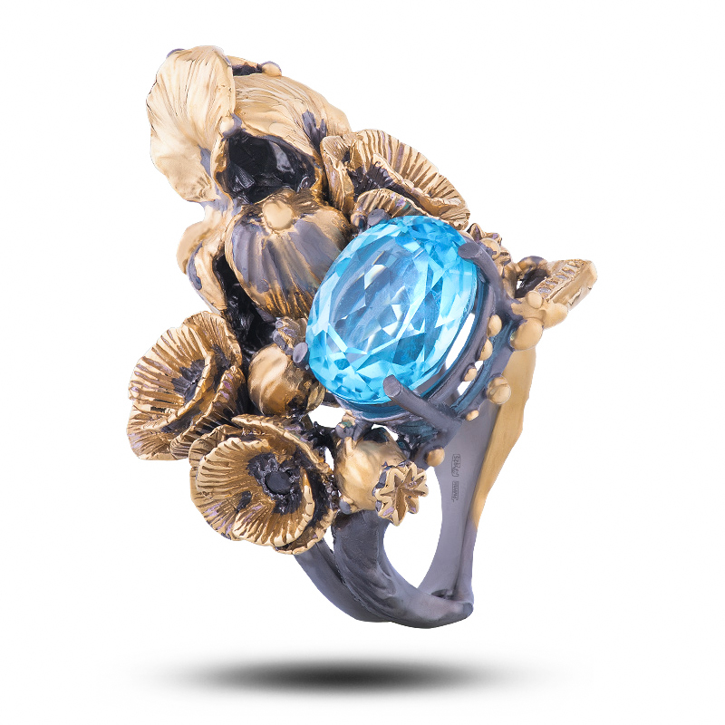 Кольцо "Маки", камни топаз, шпинель, фианит, размер 17,5