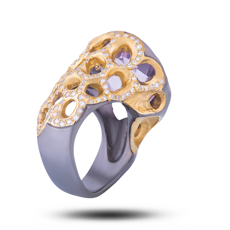 Кольцо "Медея", камни аметист, фианит, размер 17,25