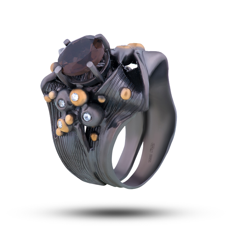 Авторское кольцо Denisov & Gems с натуральным камнем раухтопаз