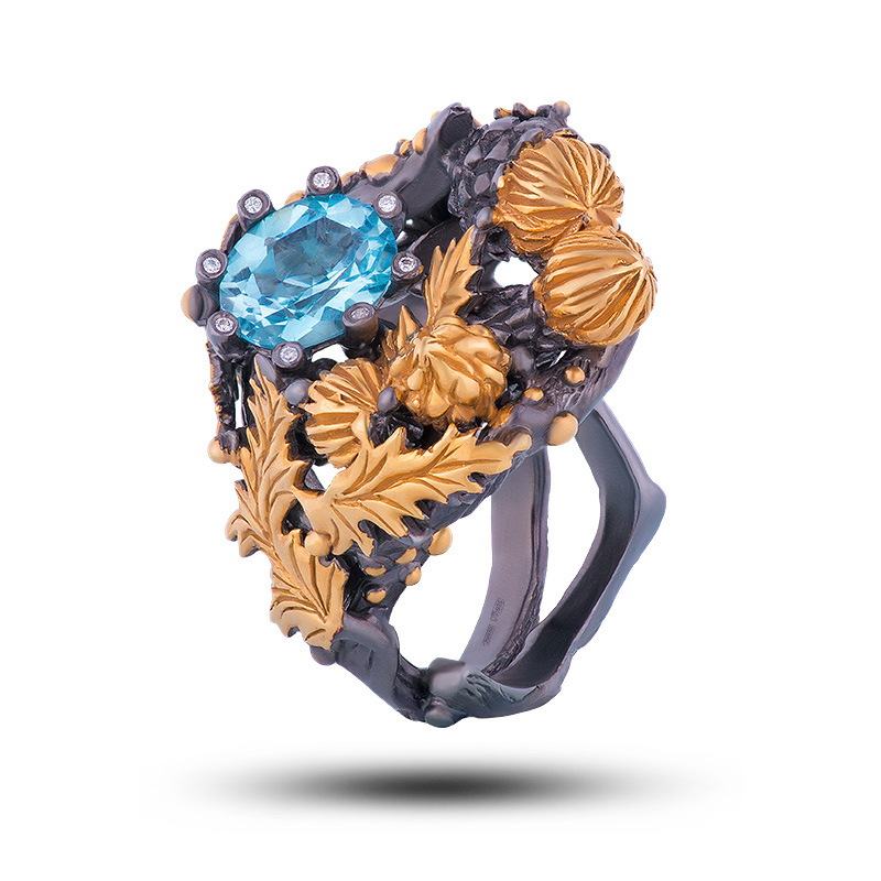 Авторское кольцо Denisov & Gems с натуральным камнем раухтопаз