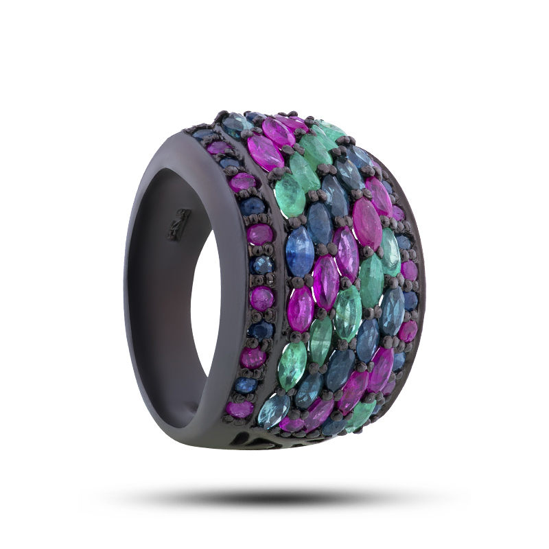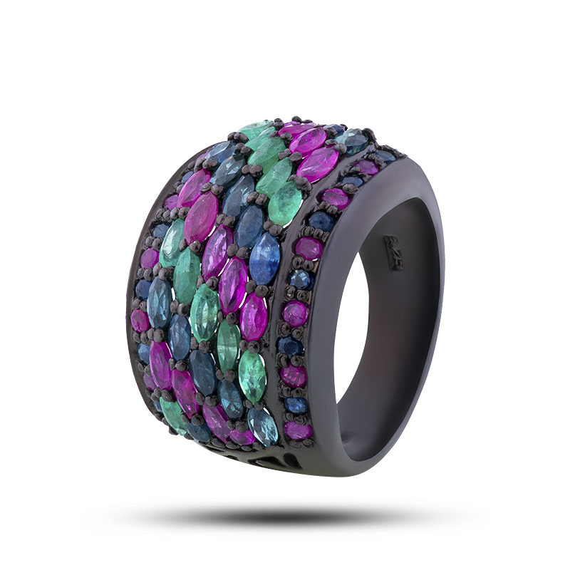 Кольцо, камни сапфир, рубин, берилл, размер 17,75