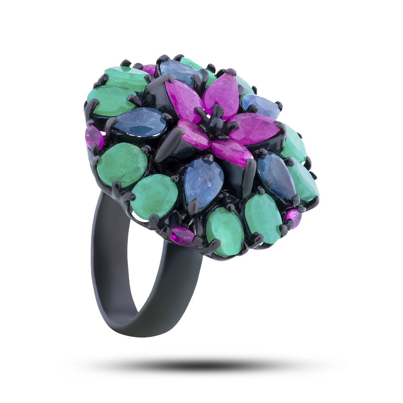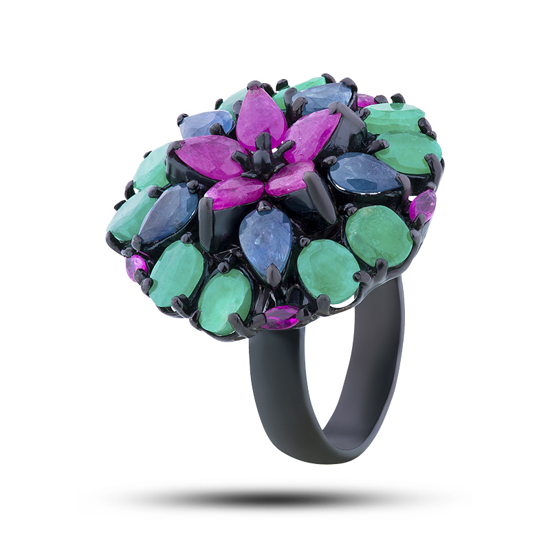 Кольцо, камни рубин, сапфир, берилл, размер 17,5