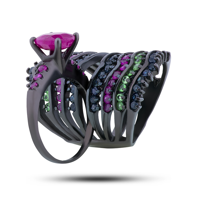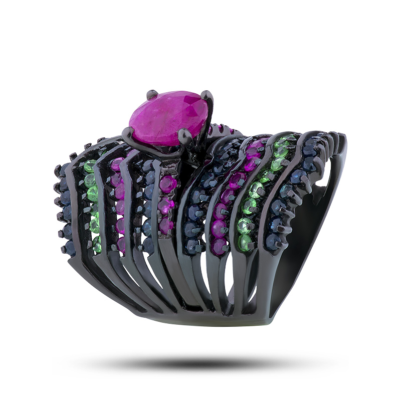 Кольцо-трансформер, камни рубин, сапфир, цаворит, размер 18,5