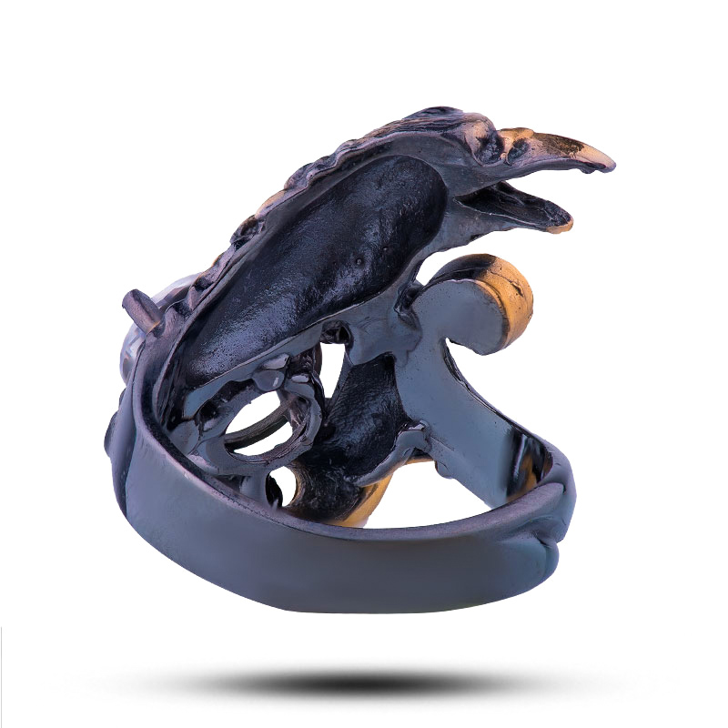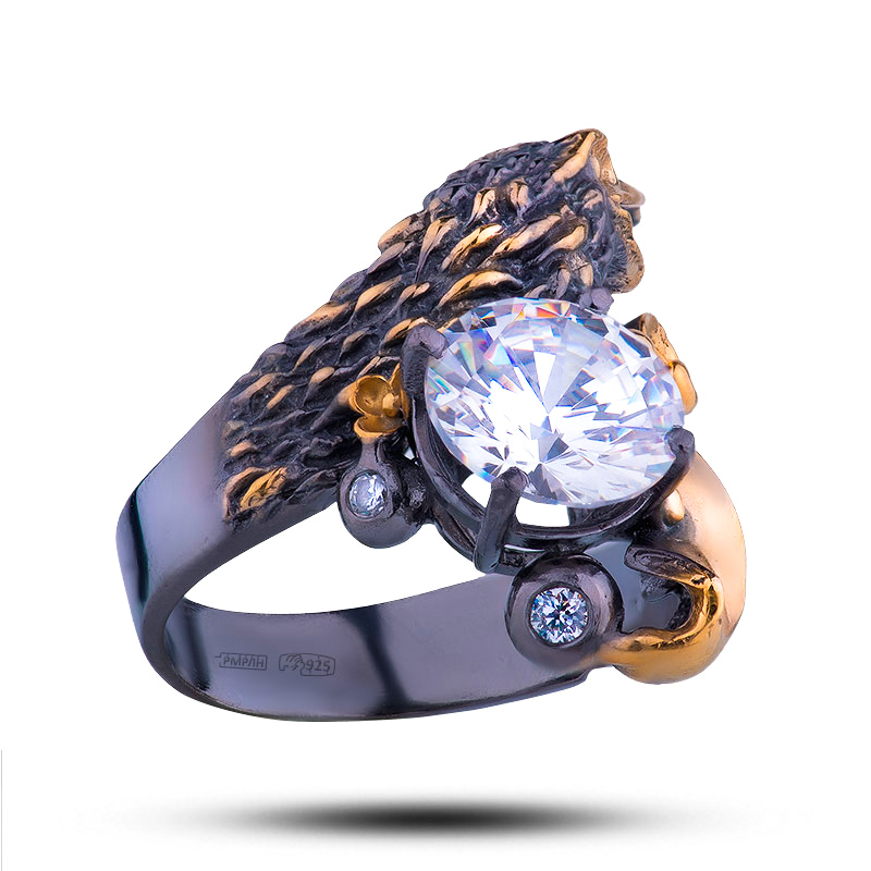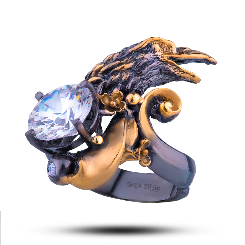 Мужское кольцо "Ворон", камень фианит
