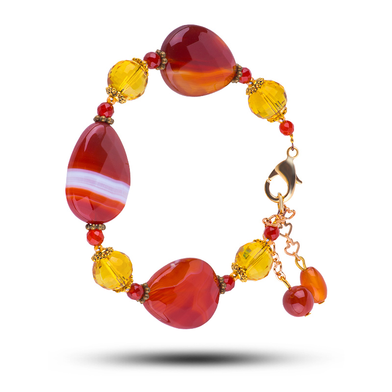 Браслет из камней сердолик, кварц, 18 см, Блум, Арт. 81132