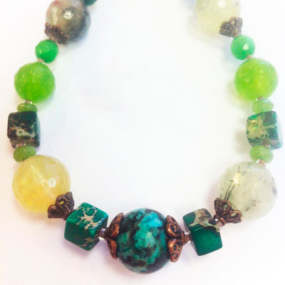 Браслет из камней цитрин, оливин, бирюза, хризопраз, Фантазия, Арт. 75540