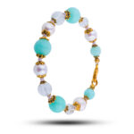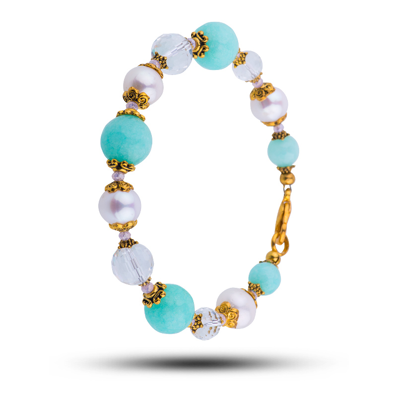Браслет амазонит, жемчуг, горный хрусталь, 20 см, Мята, Арт. 80802