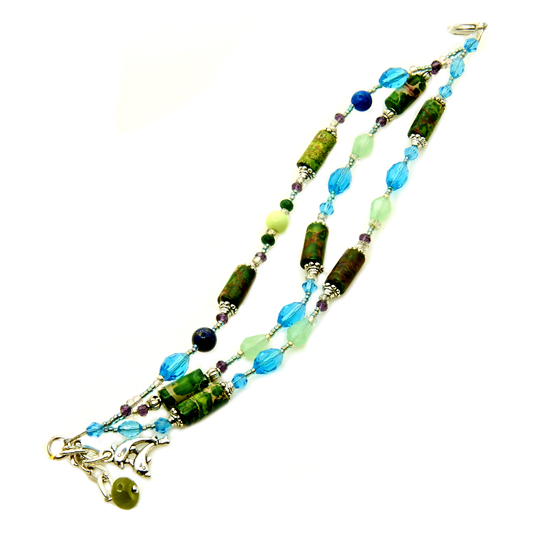 Браслет "Лагуна", камни нефрит, варисцит, кварц