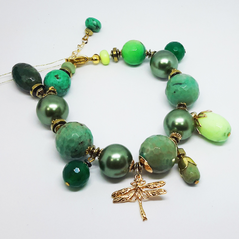 Браслет "Летний сад", камни хризопраз, майорика, 18 см