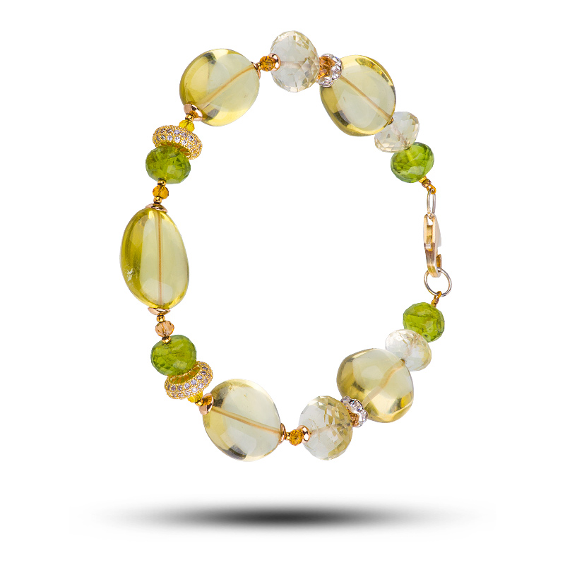 Браслет "Лимончелло" из камней цитрин, хризолит, 17 см