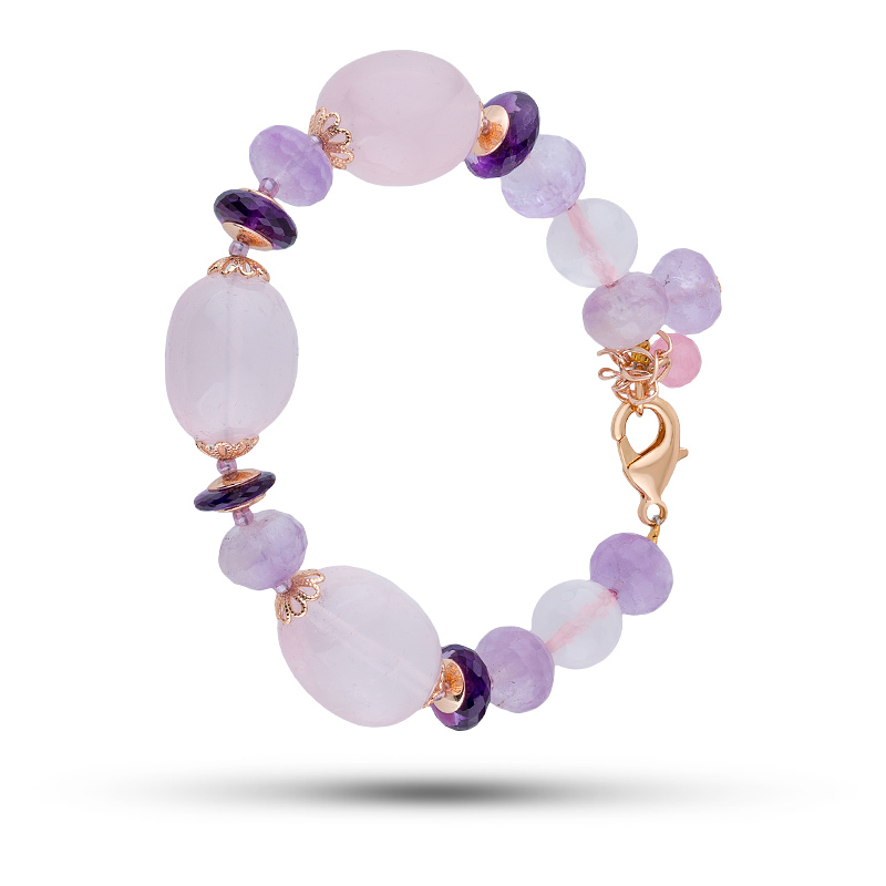 Браслет "Мириэль" из камня розовый кварц, аметист, 17,5 см