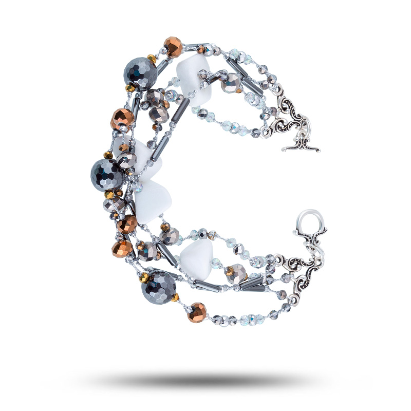 Браслет с кахолонгом, гематитом, кристаллами кварца