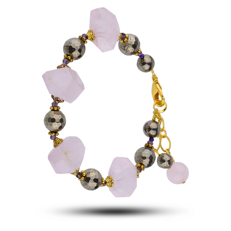 Браслет "Стейс" из камней розовый кварц, пирит, 17,5 см