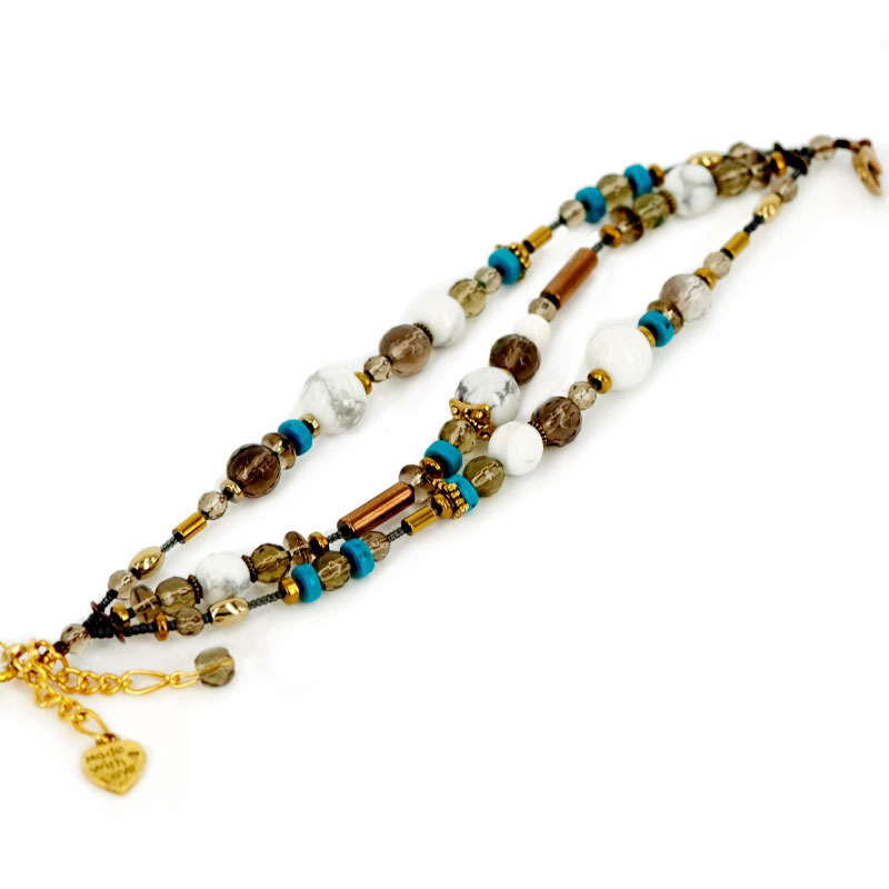 Браслет "Тайна", камни кахолонг, раухтопаз, бирюза, 19 см