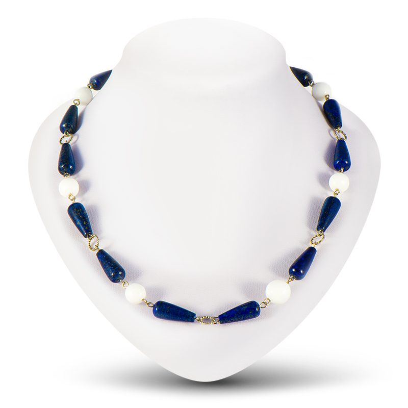 Колье "Магнолия", камни лазурит, кахолонг