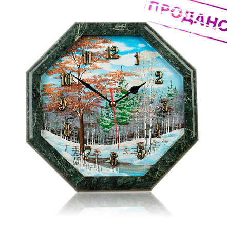 Часы "Восьмигранник" с рисунком из камня змеевик