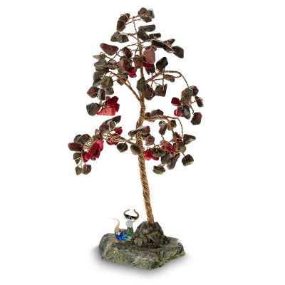 Дерево "Рябинушка с фигуркой" Камень яшма, змеевик