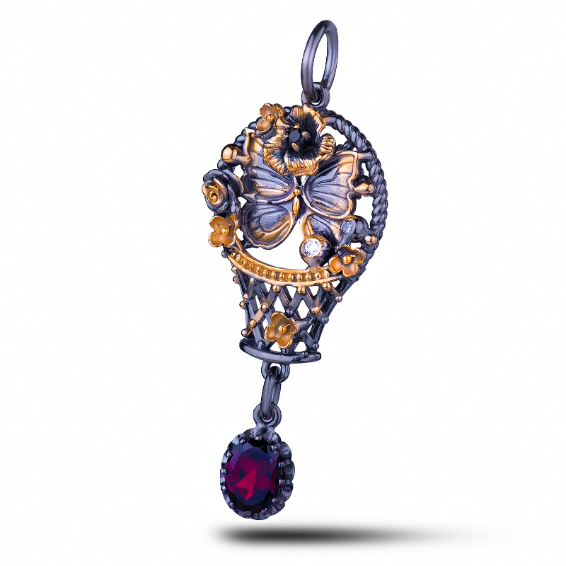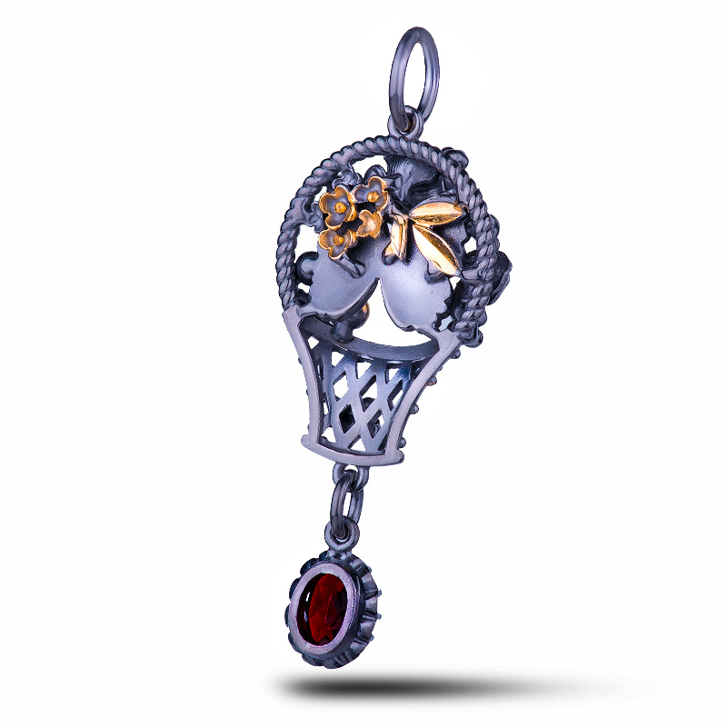 Подвеска "Корзинка", камни гранат, фианит, шпинель, 55 мм