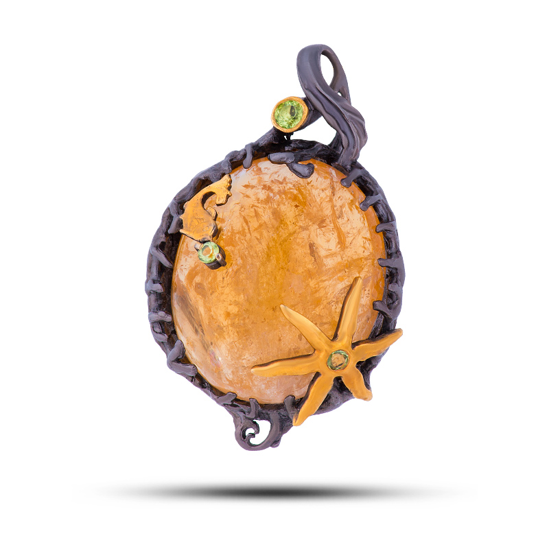 Амулет богатства и успеха, камни родолит, хризолит, цитрин