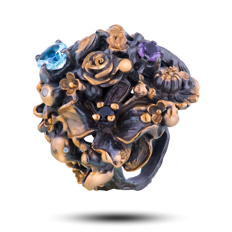 Кольцо "Букет для любимой", камни аметист, топаз, фианит, размер 16