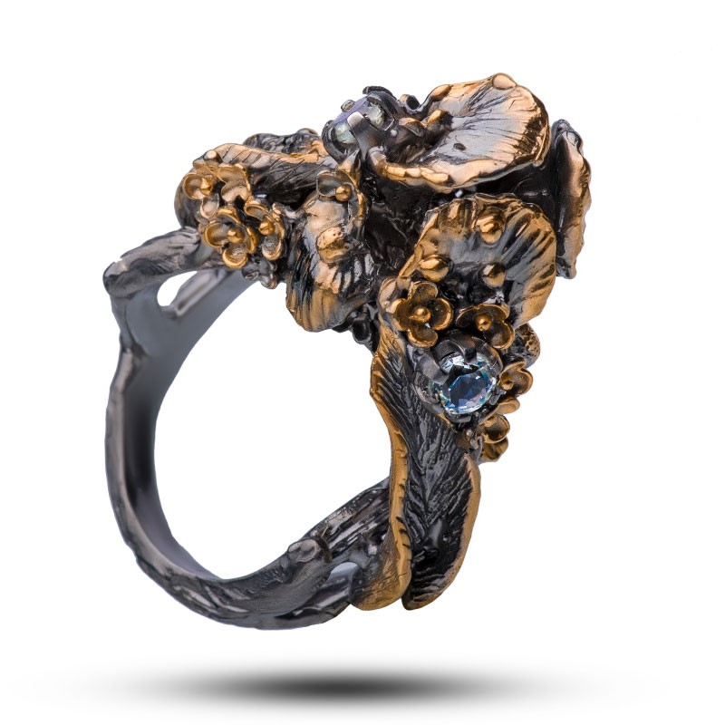 Кольцо с натуральным камнем «Бутон ириса» Бренд Denisov & Gems, из коллекции «Vida Maestro».