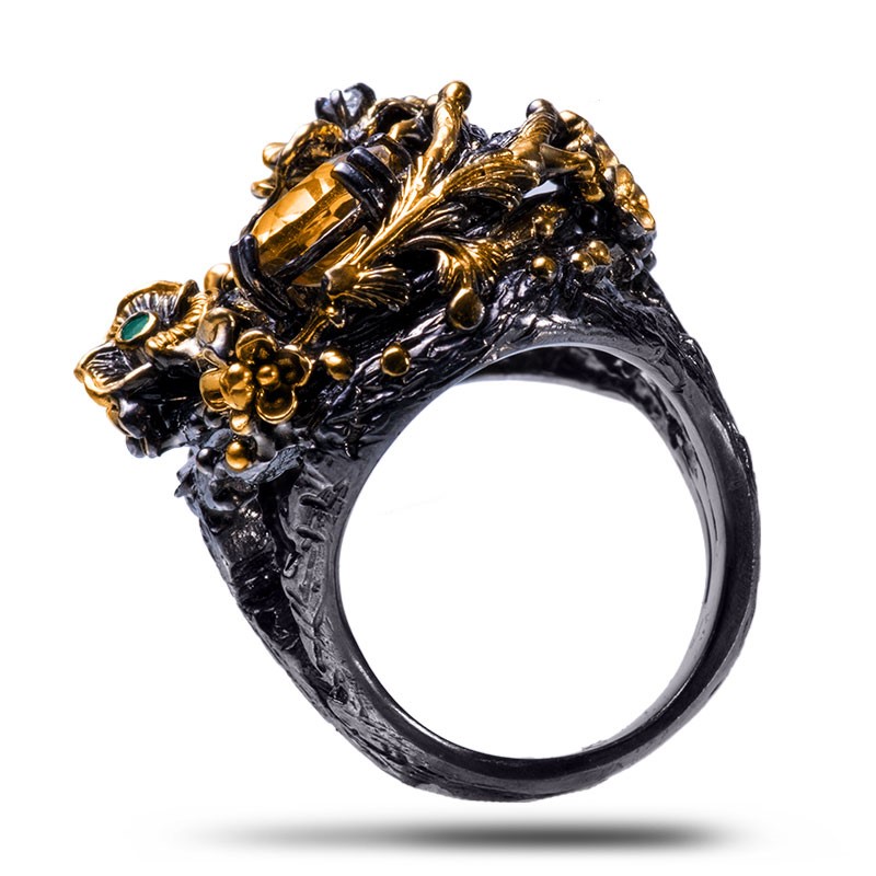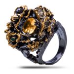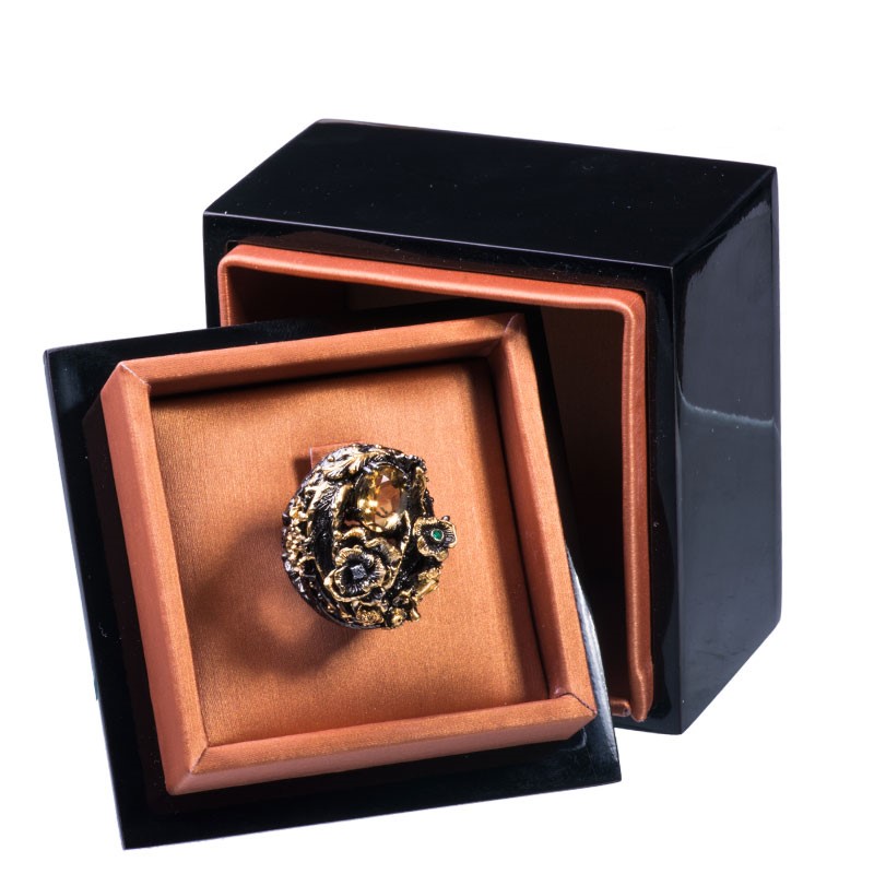 Драгоценный камень цитрин, изумруд, фианит Оправа серебро чернение, золочение