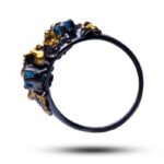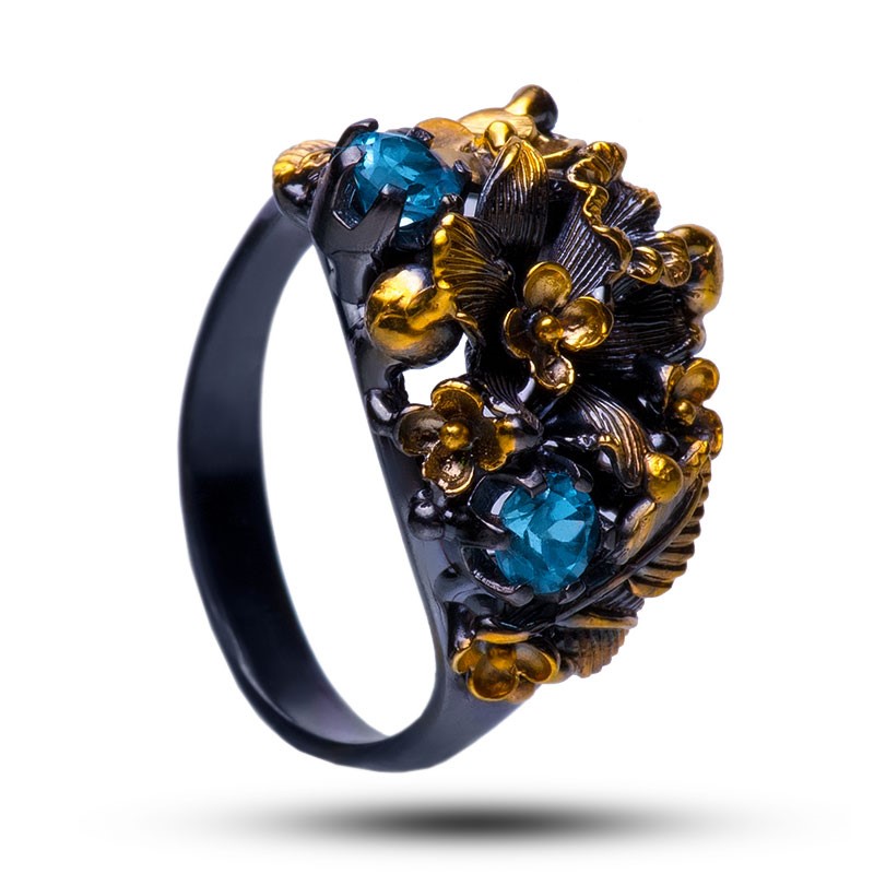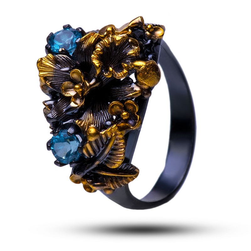 Драгоценный камень топаз Оправа серебро, покрытие черный родий, золочение