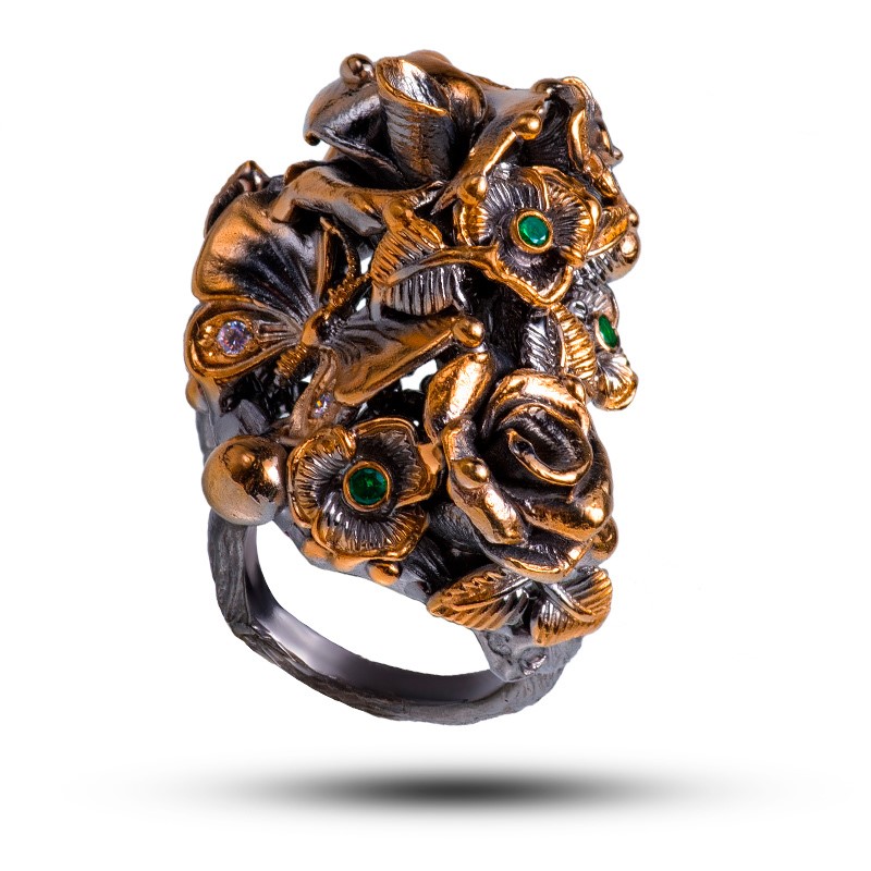 Кольцо "Мотылек", камни шпинель, фианит, размер 18