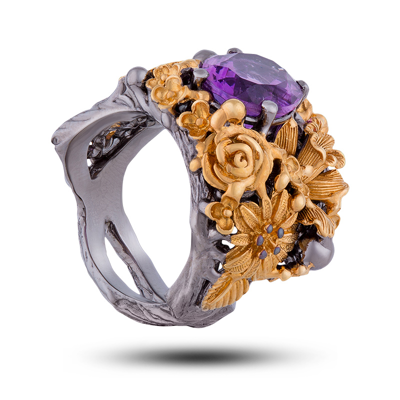 Кольцо "Нежная фиалка", камень аметист, размер 17,5