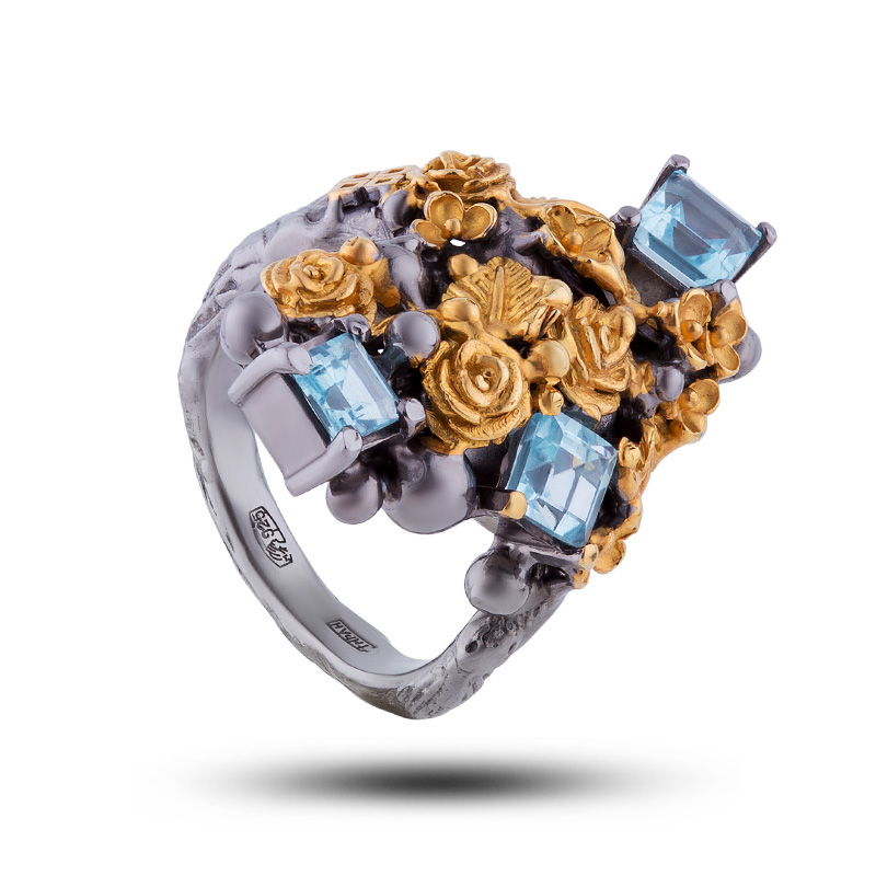 Кольцо "Нежный букет", камень топаз, размер 18,5