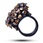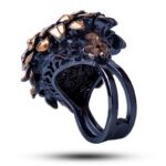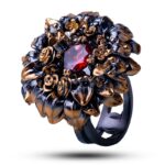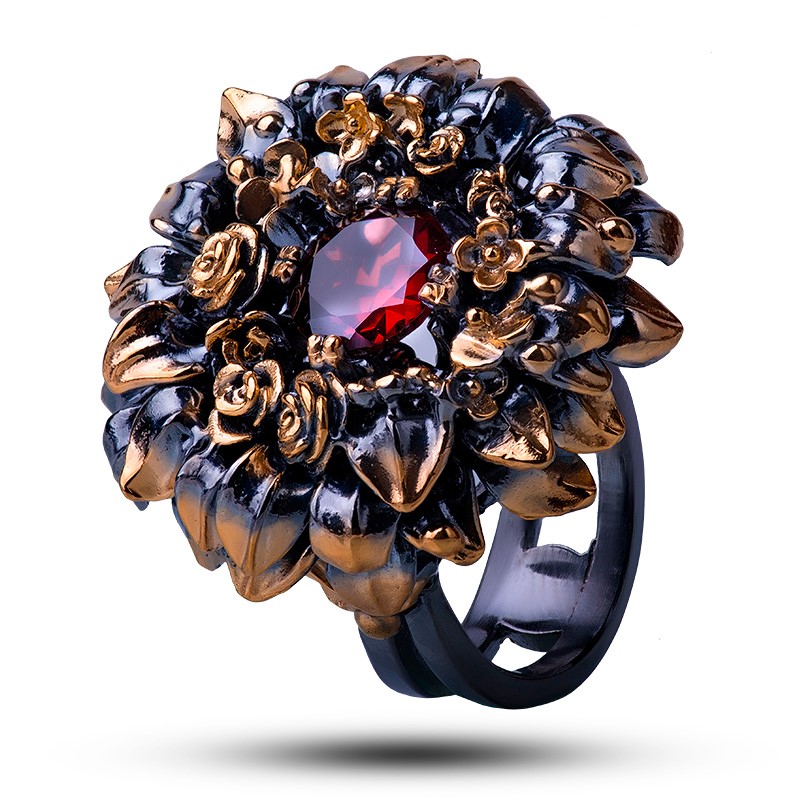 Драгоценный камень гранат. Оправа серебро, покрытие черный родий, золочение