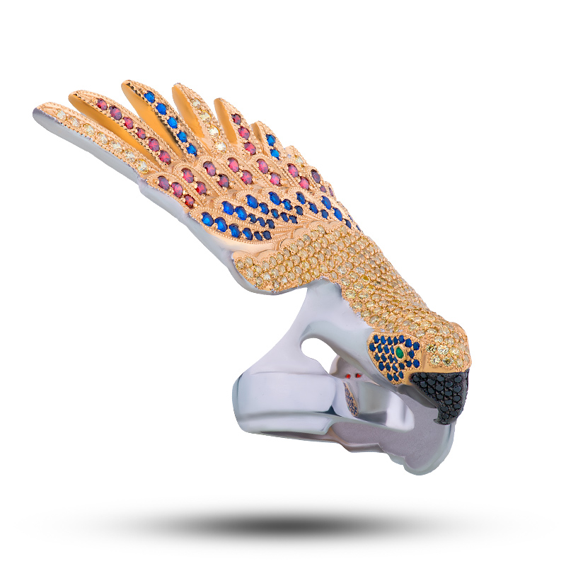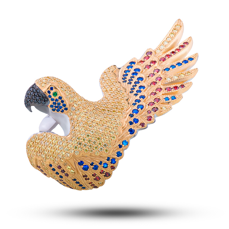 Кольцо "Попугай" с камнями шпинель, фианит, размер 17,5