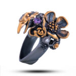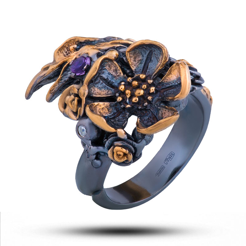 Оправа серебро, покрытие черный родий, золочение;